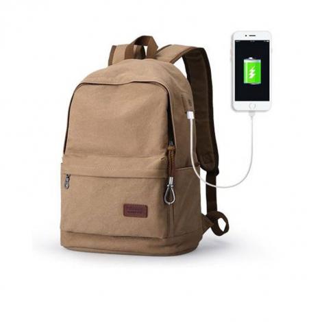 15.6 Inch Laptop Cloth Backpack With Usb Charging Port SMR-765 BeigKEY FEATURES
